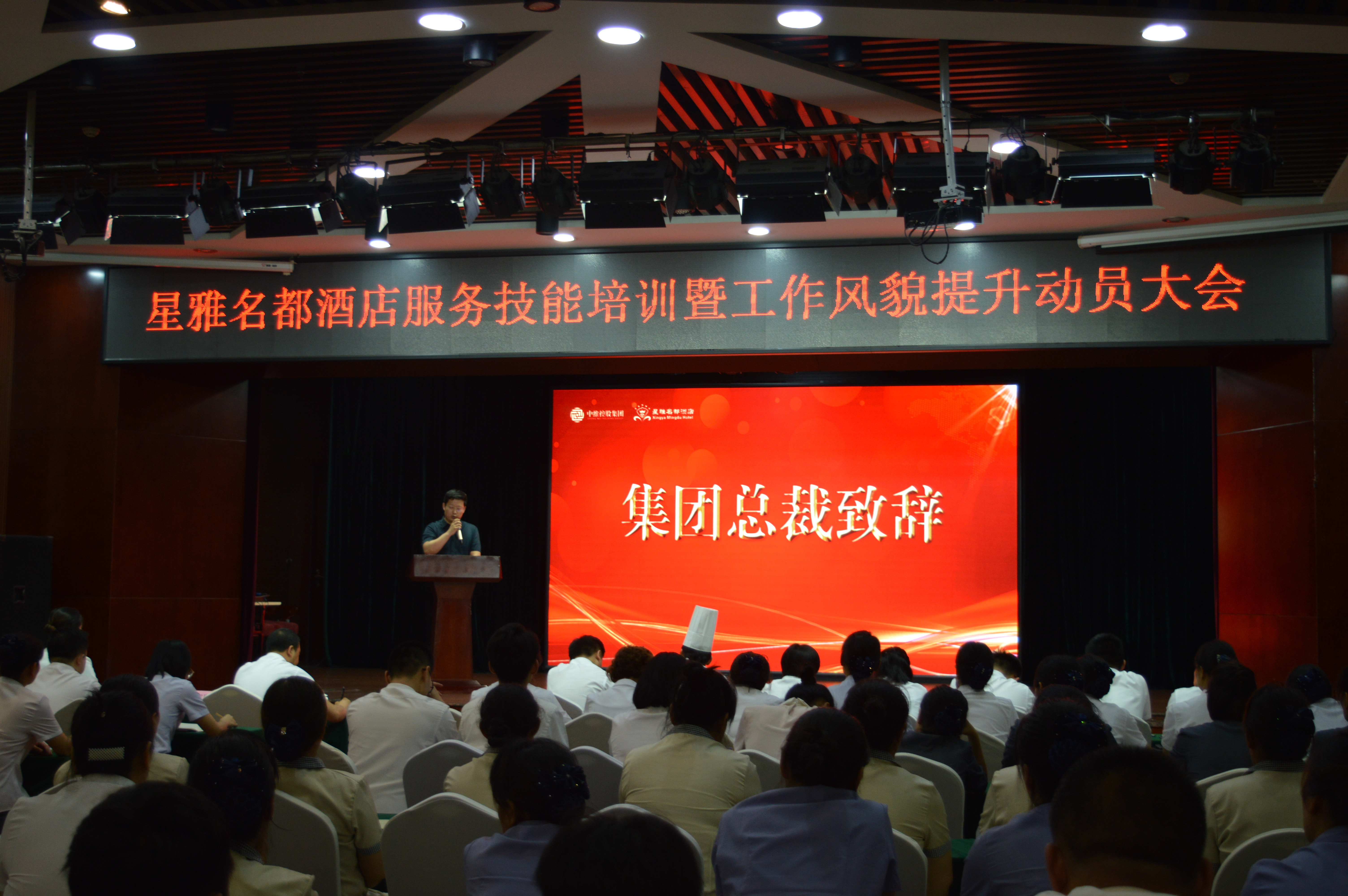 集團總裁郭雅磊向大會致辭,郭總對酒店服務品質提升及培訓工作的開展提出兩點部署:首先,要統一思想,提高認識,進一步增強責任感和使命感;其次,務必精心組織,強化措施,全力抓好服務技能培訓落實。酒店自今日起,要掀起一場轟轟烈烈的以“強化管理、提升服務”為主題的大培訓、大學習活動,通過培訓活動使大家的工作及精神面貌有明顯改觀、服務質量及員工整體素質強化提升、管理機制得到進一步加強與完善。最后,郭總向酒店全員發出號召,希望全體星雅人攜起手來,臥薪嘗膽刻苦鉆研、勠力同心共克時艱,重塑星雅酒店輝煌,共同開拓星雅酒店更加美好的明天!