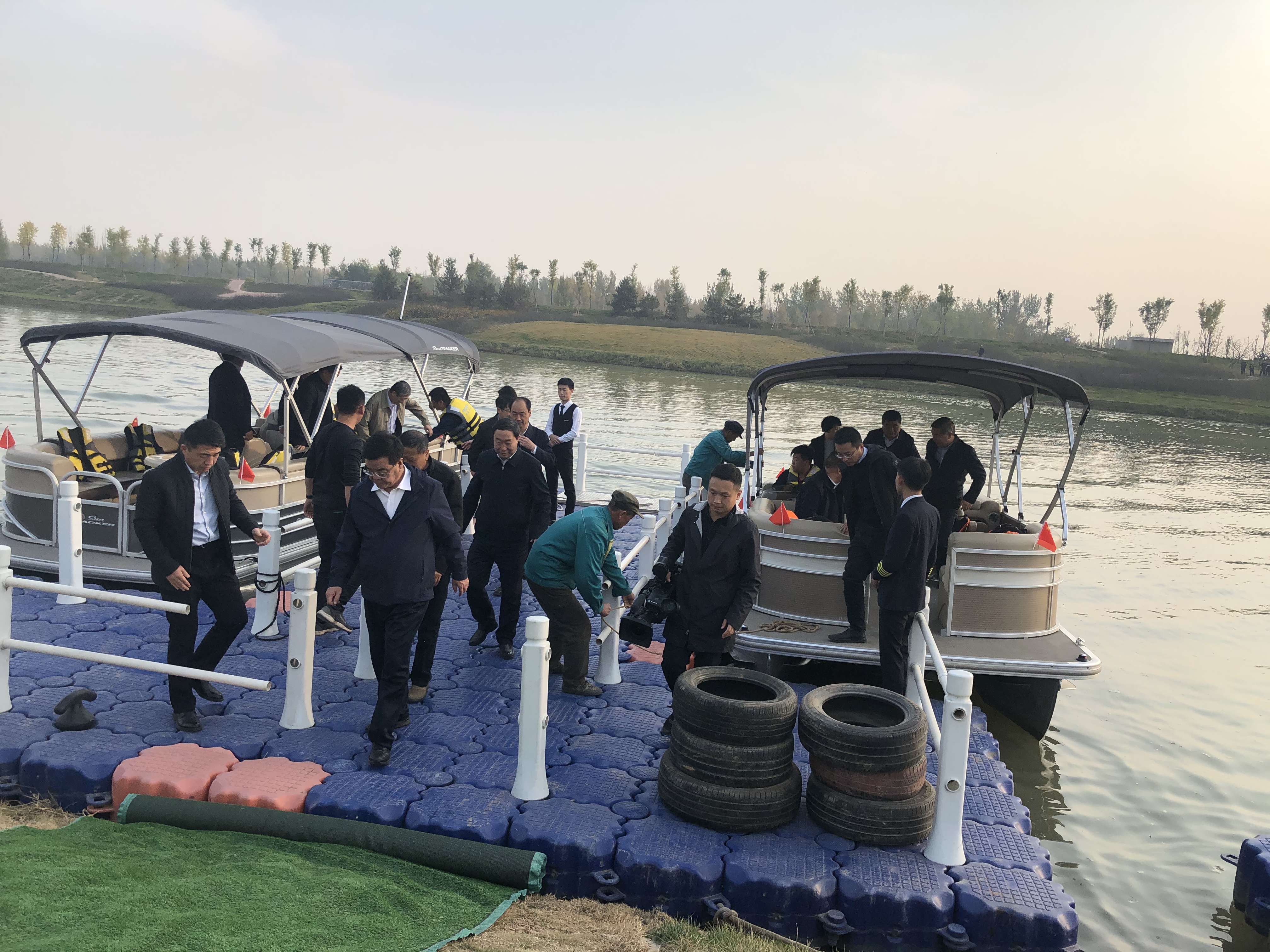 晉中市市委書記趙建平及市、區、縣等領導,先后考察參觀了“瀟河國際露營地”展區的各個展點。首先,觀看了山河景公司載人無人機表演,并詳細詢問了解了載人無人機的各項參數及技術應用范圍及情況。隨后,考察組來到游艇碼頭親自體驗了游艇項目,在瀟河碧波上,兩岸風光盡收眼底。最后,考察組參觀了不同型號成品房車,并就房車區域的未來規劃、準備投入量及發展前景等問題進行了詳細了解。