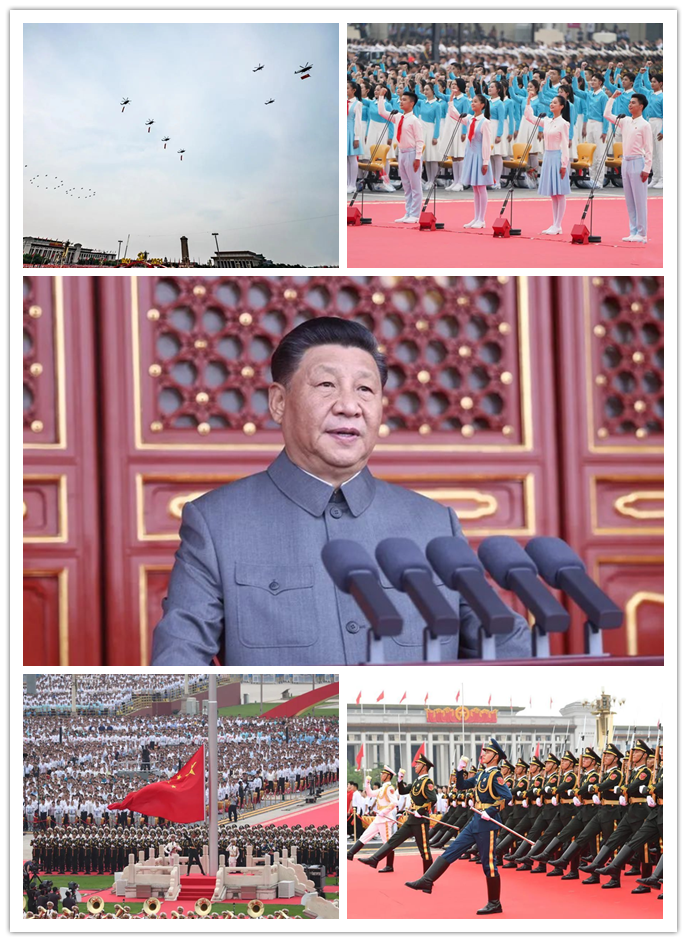 8時整,大會開始。戰鷹飛過天安門廣場,最美的祝福送給黨!國旗護衛隊器宇軒昂、步伐堅定,從人民英雄紀念碑到國旗桿220米的距離,由齊步、正步、齊步各100步完成;這條路不長、剛好走了100步,這條路很長、足足走了100年!會場內外萬千中華兒女注目著五星紅旗冉冉升起,莊嚴的外表難掩內心無比的激動。緊接著,共青團員和少先隊員代表們集體致獻詞,滿懷深情表達了對黨百年華誕的真摯祝福。接下來,大會進行最為重要的議程,習近平總書記發表重要講話!當總書記講到“中國人民也絕不允許任何外來勢力欺負、壓迫、奴役我們,誰妄想這樣干必將在14億多中國人民用血肉筑成的鋼鐵長城面前碰的頭破血流”時,集團全體黨員心潮澎湃,會議室內響起熱烈掌聲!