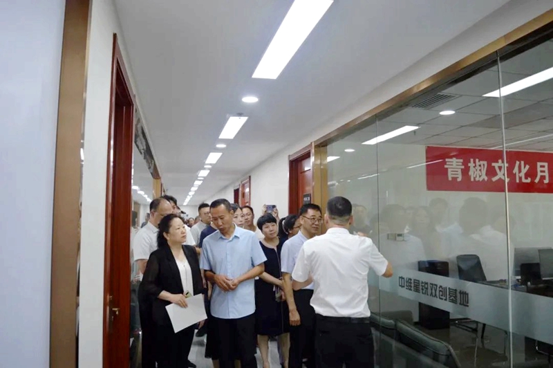 2023年8月9日上午,晉中市政協副主席張學東等領導一行蒞臨中維控股集團創新創業基地考察調研,集團領導、各板塊總經理、創新創業事業部負責人陪同接待,考察團現場參觀了“數字電商選品中心、洺滄優品創客超市、數字電商創客空間、電商直播孵化中心”等業態空間及配套設施,并就企業創新與大學城高校開展校地合作情況進行了深入調研,集團創新創業事業部負責人焦永鵬向考察團詳細介紹了數字電商雙創基地及電商直播人才孵化中心發展情況。