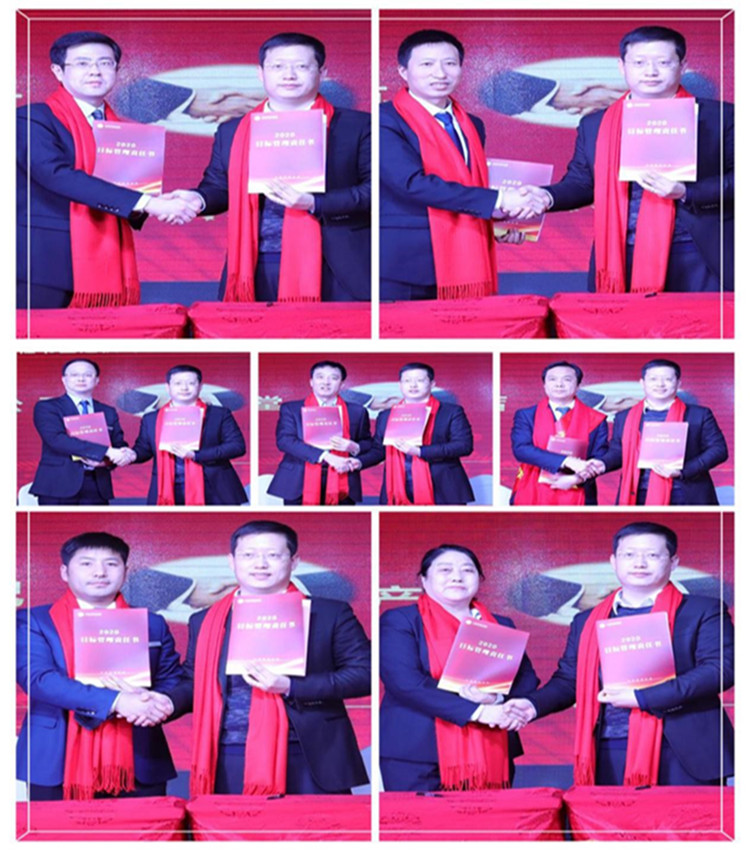 在介紹集團組織框架和集團、各子公司高管后,各位高管與郭雅磊總裁簽訂《目標管理責任書》,部分單位的高管帶領管理團隊進行工作動員表態,向集團保證完成2020年工作任務。