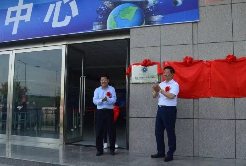 山西省航空運動協會主席郭福林、中維集團董事長郭秀忠為“山西省航空運動協會航空科普教育宣傳委員會”揭牌